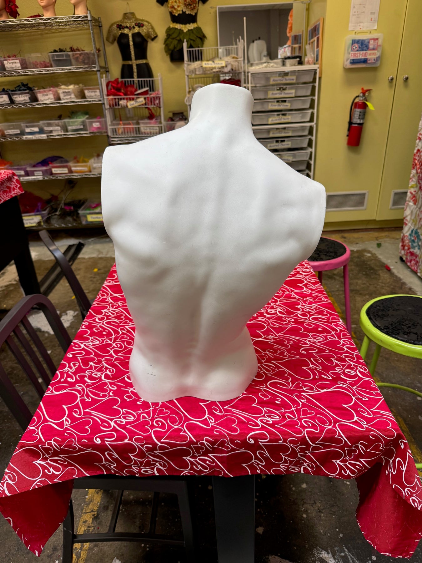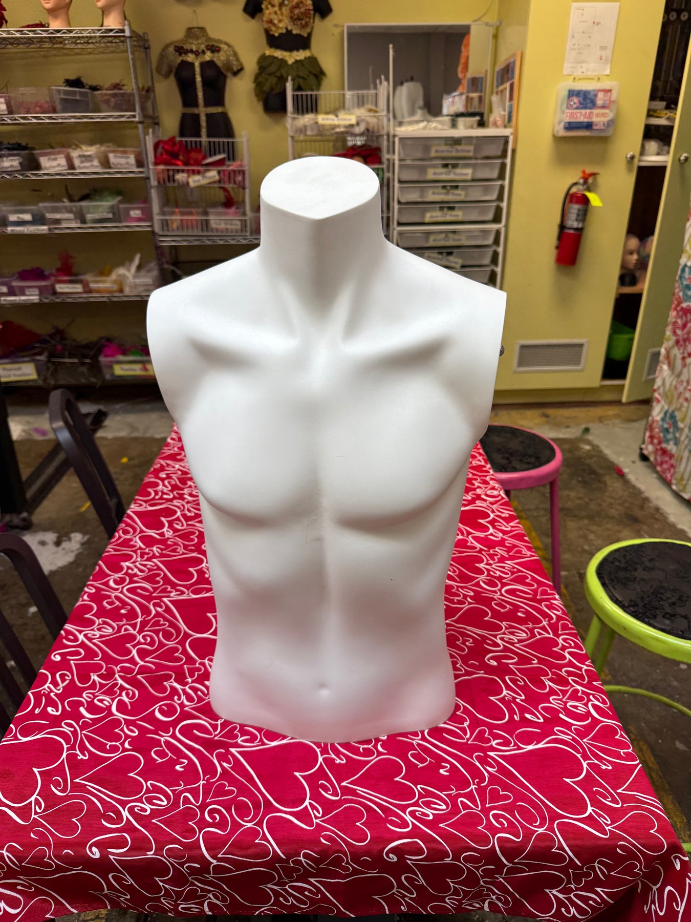 We have a bunch of fiberglass male torsos that were originally part of a mannequin. But since the mannequin was damaged or missing arms we decided to just sell the torsos. Some are more athletic looking than others, let us know if you have a preference.